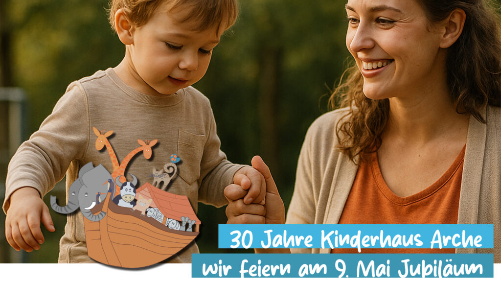Seit 30 Jahren begleitet das ev. Kinderhaus Arche Kinder und Familien auf ihrem Weg. Dieses besondere Jubiläum möchten wir gemeinsam feiern – mit einem offenen Haus, Zeit für Begegnung und einem bunten Programm für Groß und Klein. Wir freuen uns auf alle Familien, Ehemaligen, Freunde und Interessierten!