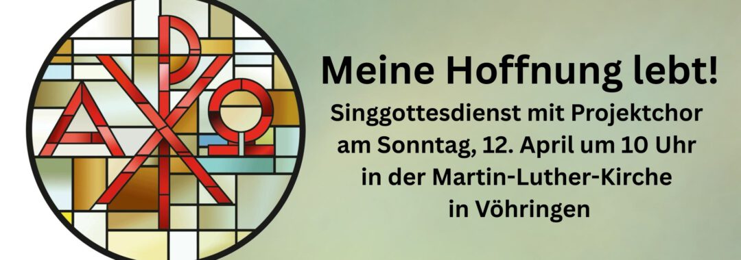 Wir laden ein zum Singgottesdienst mit Projektchor am Sonntag, 12. April um 10 Uhr in die Martin-Luther-Kirche in Vöhringen.