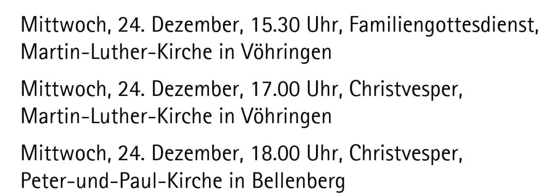 Unsere Gottesdiensttermine an Heiligabend und Weihnachten in Vöhringen und Bellenberg