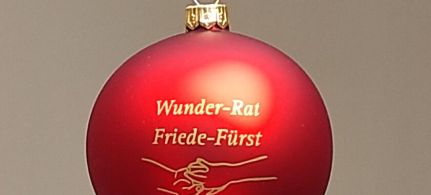 Auch in diesem Jahr kann wieder eine neue Christbaumkugel mit dem Schriftzug „Wunder-Rat – Friede-Fürst“ für 6,- € im evangelischen Pfarramt in Vöhringen erstanden werden. Das ideale Geschenk statt Wein und Pralinen beim Weihnachtsbesuch oder vielleicht gibt es auch schon Sammler, da die Auflage limitiert ist. Der Erlös aus dem Verkauf geht in den Erhalt der Martin-Luther-Kirche in Vöhringen.